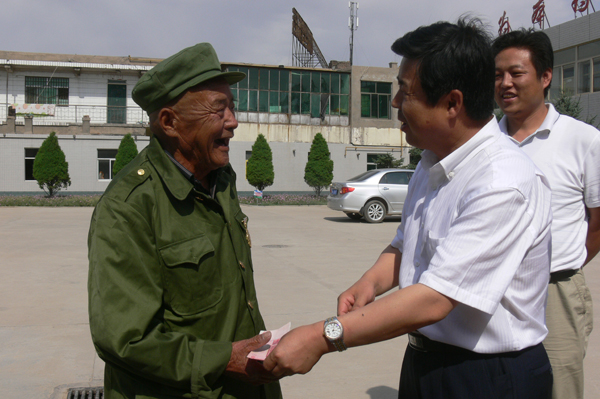 靖边县敬老院现有的4个老人都是解放战争时期为中国革命胜利做过特殊贡献的老复员军人。慰问中,该厂亲切询问老人们的身体状况,并祝老人们节日快乐,身体健康。在查看了老人们住宿、饮食等生活情况时。该厂表示今后会大力支持老人们的生活,帮助老人们解决困难,让老人们的生活进一步得到充实,让老人们享受幸福、快乐的晚年生活,为企地和谐发展创造良好的社会环境。