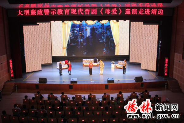 9月23日,一场跌宕起伏、感人肺腑、发人深省的大型廉政警示教育现代晋剧《母爱》在靖边县榆炼职工俱乐部倾情上演,该县全体在家县级领导;县直各部门、各单位、各镇(场)、便民服务中心领导干部;县纪委监察局全体干部共800余人观看了演出。演出高潮迭起,观众情随戏动,时而寂静一片,时而轻泣叹息,时而掌声雷动。
