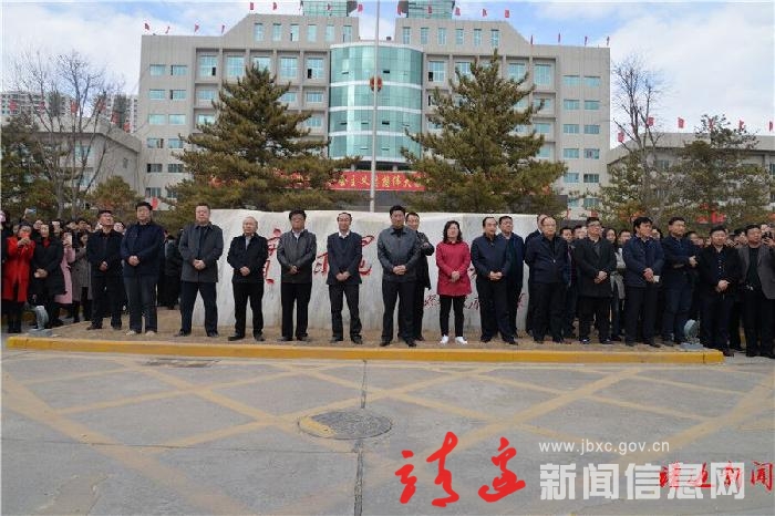 在靖边县党政办公区大门口,县委书记刘维平,县长贺湘如和常少海、王鑫、刘波、孟春伟、王建华、赵少毅、慕靳革、苗小平等县级领导同人民群众一起观看了秧歌表演。