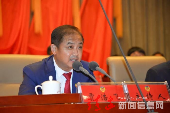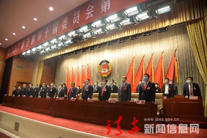 初春的塞北靖边,春和景明,生机勃勃。3月15日的靖边县党政会议中心气氛庄重热烈,大会主席台正中悬挂着象征全国各族人民大团结的政协会徽,十面鲜艳的红旗分列两侧。主席台对面悬挂着“贯彻新理念,开启新征程,奋力谱写靖边新时代高质量发展新篇章”的横幅,鼓舞人心、催人奋进。