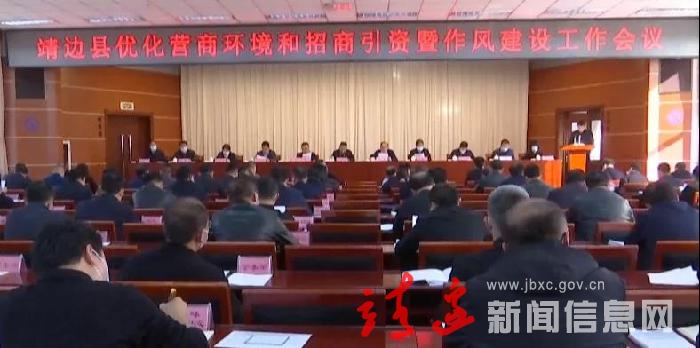 11月3日,靖边县召开优化营商环境和招商引资暨作风建设工作会议,县委书记李世书,县人大常委会党组书记刘波,县政协党组书记贾浩飞,县委副书记李万昌,县委常委张文祥、谢亚云、惠静波、程超、李京津、任利戈及全体在机关县级领导,各镇(便民服务中心)、张家畔街道、新桥农场主要负责人,各县直部门和部分中省市驻靖单位负责人参加会议。县委副书记、代县长曹龙主持会议。
