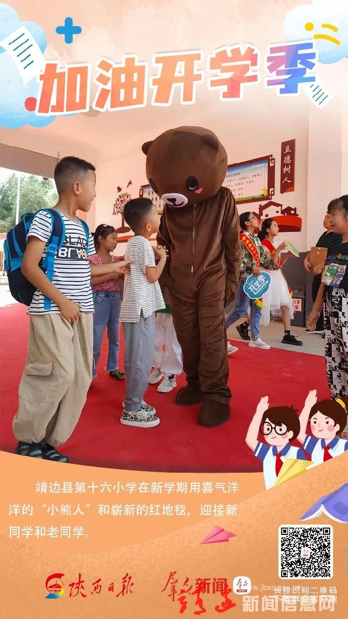 新学期,新准备,爱与仪式感并存。为了迎接新同学和老同学,学校准备了喜气洋洋的“小熊人”和崭新的红地毯,崭新的红毯是一条长长的爱心成长路,象征着孩子们今后一路向前的成长和进步。