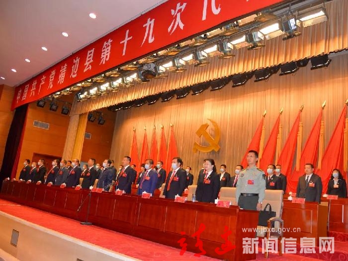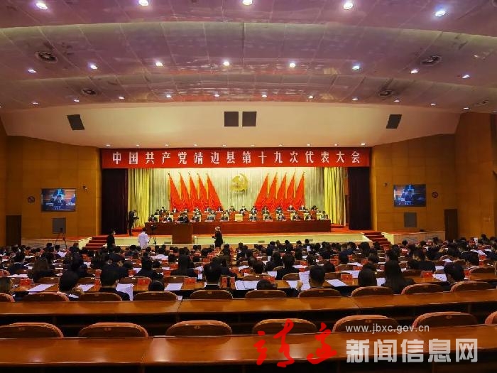 9月29日的党政会议中心雄伟庄严,气氛热烈。主席台上方悬挂着“中国共产党靖边县第十九次代表大会”的会标,后幕正中是镰刀和锤头组成的党徽,10面鲜艳的红旗分列两侧。主席台对面悬挂着“贯彻新理念 开启新征程 奋力谱写靖边新时代高质量发展新篇章”的横幅,鼓舞人心、催人奋进。
