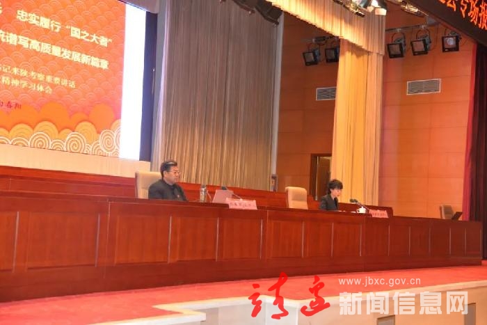10月14日,习近平来陕考察重要讲话重要指示精神市委宣讲团靖边县专场报告会召开,市委宣讲团成员、县人大常委会主任白春阳作专题报告,县委常委、副县长乔治浩,县委常委、组织部部长程超等全体在机关县级领导参加报告会,县委常委、宣传部部长李京津主持报告会。