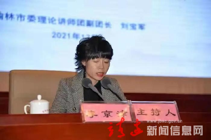 12月9日,学习贯彻党的十九届六中全会精神市委宣讲团来我县宣讲。市委宣讲团成员、市委理论讲师团副团长刘宝军作宣讲报告。县委书记李世书,县委副书记、代县长曹龙,县委副书记李万昌,县委常委乔治浩、惠静波、任利戈等在机关县级领导,县直各部门,各镇(便民服务中心)、张家畔街道、新桥农场,驻靖单位主要负责人,宣传思想文化系统干部代表和县委理论宣讲团全体成员聆听了报告。县委常委、宣传部部长李京津主持报告会。
