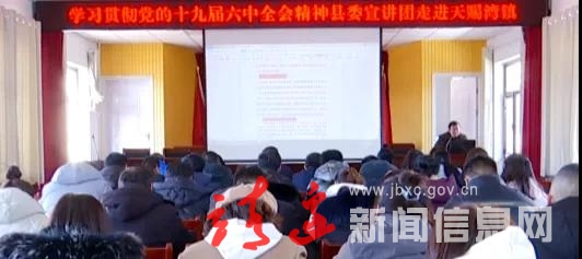 为了深入学习党的十九届六中全会精神,深刻领会精神实质和丰富内涵,12月15日,县委宣讲团走进天赐湾镇,宣讲党的十九届六中全会精神。天赐湾镇全体领导干部、各村党支部书记、第一书记等参加宣讲会。
