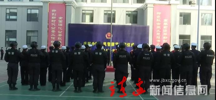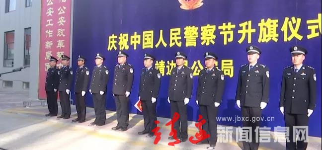 伴随着雄壮的《中国人民警察警歌》声,鲜艳的中国人民警察警旗冉冉升起,迎风飘扬。全体民警整齐着装、列队肃立,面向警旗庄严敬礼,表达着对祖国与人民的无限忠诚与热爱。