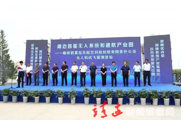 7月2日,由榆林鹤翼航天航空科技创新有限责任公司自主研发、生产的“长鹤”油电复合翼垂直起降无人机平台和“飞鹤”手抛无人机平台,在靖边智能无人系统和通航产业园成功试飞。县人大常委会主任任利戈,县人大常委会党组成员沈光利及相关单位负责人参加活动。