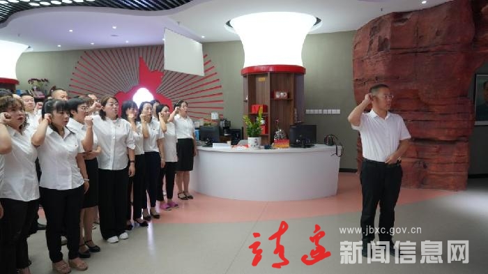 参观结束后,全体党员干部在党旗下重温入党誓词,县纪委副书记、监委副主任张玉坤领誓。大家面向党旗,举起右拳,重温入党誓词,铮铮誓言进一步坚定了继承和发扬先烈精神、筑牢忠诚品格、忠实履职尽责的决心和勇气。