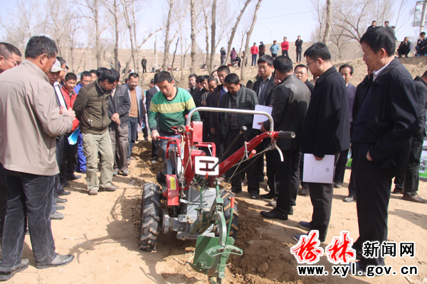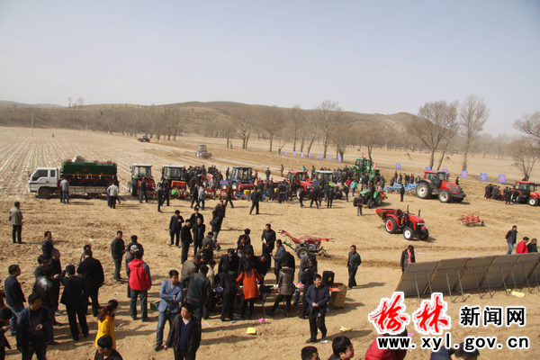3月20日,春风和煦,阳光明媚。在我县席麻湾乡席麻湾村高崖则村小组,一台台现代化的农机具轮番示范作业、现场机声隆隆,人潮攒动,来自全县各乡镇的农机专业合作社、农机大户、农机操作手、农民代表都急着赶来参观这一场看得见摸得着的农机现场会。县委书记雒凤翔,县委常委统战部长刘钧,人大副主任张广德、副县长折小利、政协副主席谢红静,县委办、人大办、政府办、政协办、科技局、发改局、财政局,23个乡镇(场)及便民服务中心,农机经销企业参加现场会。