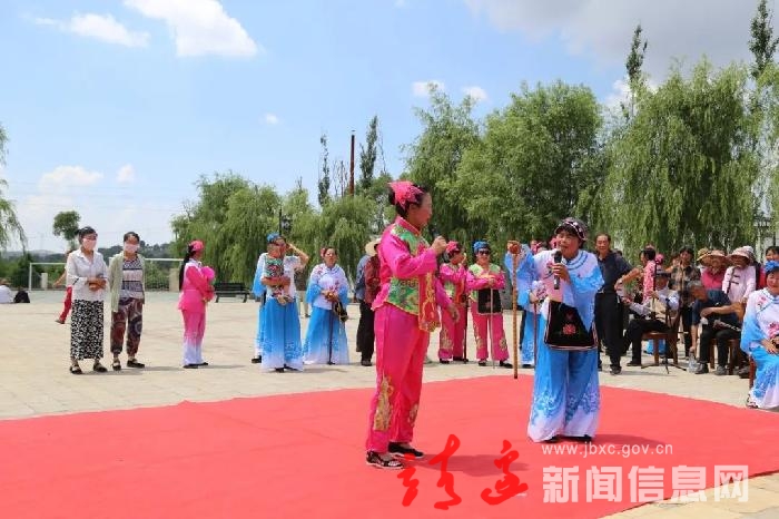 伴随着强劲有力的鼓点,百十位身着彩衣、精心打扮的俊女子和婆姨们尽情扭跳,红艳艳的彩扇花样翻飞,场面宏大,热闹非凡,赢得阵阵喝彩。这次文艺演出内容丰富多样,传统节目《张连卖布》、《拾邋遢 》、《二奶奶》、《十二月忙》等幽默有趣,引得众人捧腹。除此以外,还有村里孩子们自编自演的舞蹈《你笑起来真好看》、《最炫民族风》,歌唱节目《没有共产党就没有新中国》引起全场共鸣,大家挥着鲜艳的五星红旗,独唱变成了大合唱,场面感人至深。