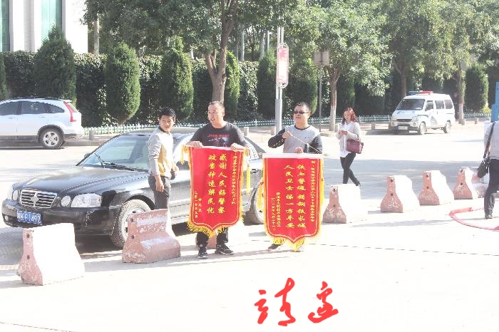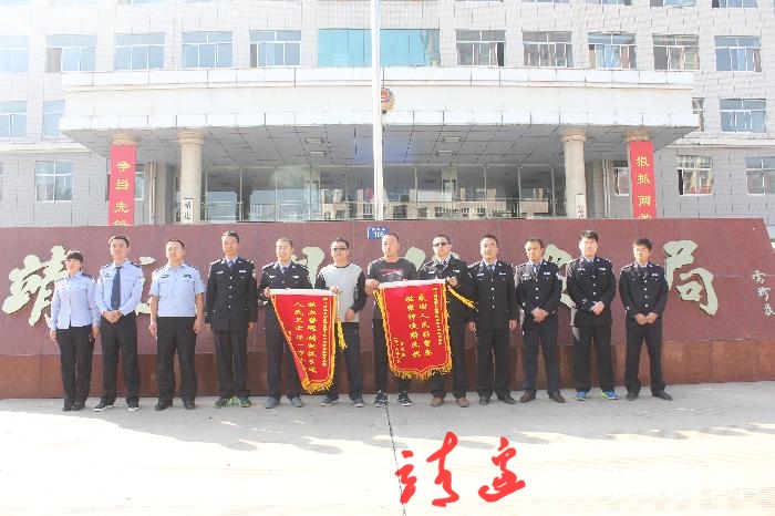 本网讯(白凌燕)9月21日,靖边县公安局院落里迎来了两位特殊的客人,他们带着绣有“铁血警魂,铸钢铁长城;人民卫士,保一方平安”、“感谢人民好警察,破案神速解民忧”的锦旗,送给9.14持刀抢劫案专案组全体人员,弘扬社会正能量,震慑犯罪分子。