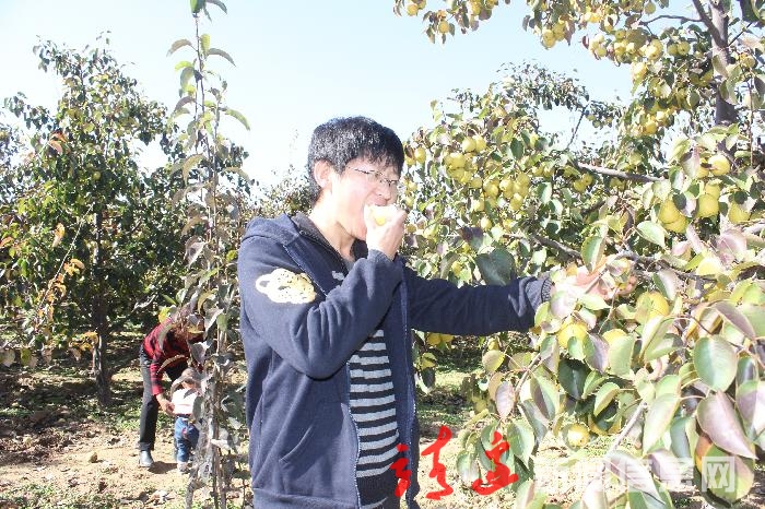 游客现摘现吃龙洲纯天然绿色无公害黄金梨