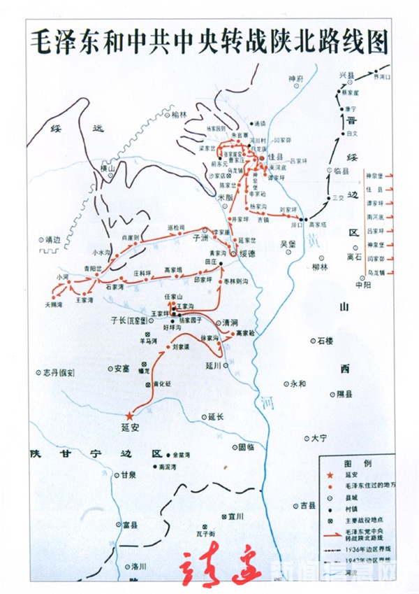 转战陕北地形图显示靖边天赐湾是毛主席和中共中央西行的最“终点”