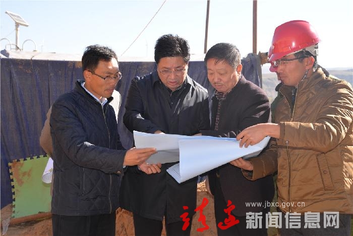 刘维平与工作人员就工程建设、设计等问题进行商讨