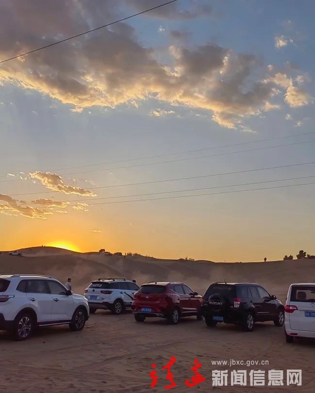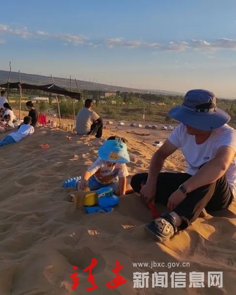 清凉午后将炎热盛夏的气息冲淡,人们呼朋唤友、携妻带子,打赤脚走在沙漠中,或玩闹嬉戏,或静坐观景。“落日与晚风深情地相拥,曾相遇的路口记忆盘旋了很久……”用这句惬意唯美的歌词形容此中情景恰如其分。