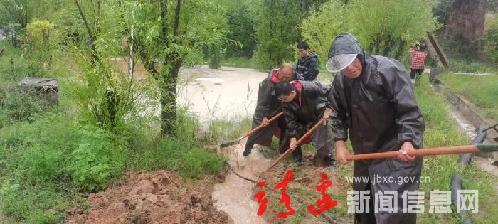 在贺阳畔村,村里道路被暴雨冲断了,看着镇村干部灾后冲在一线极力抢险,住在山上的村民樊树军自发前去维修水毁道路,即使全身湿透,满身泥巴也不在乎,依然拿着铁锹使劲儿干活。