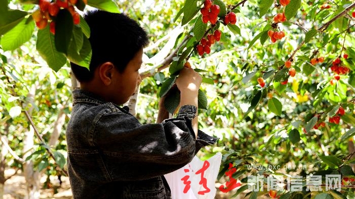 仲夏的靖边,天蓝水清,到处生机勃勃。走进席麻湾镇大沟村的东茂家庭农场,满山的樱桃树上挂满了红宝石般的樱桃,随手摘下一颗放入嘴里,甜甜的汁水即刻荡漾开来…
