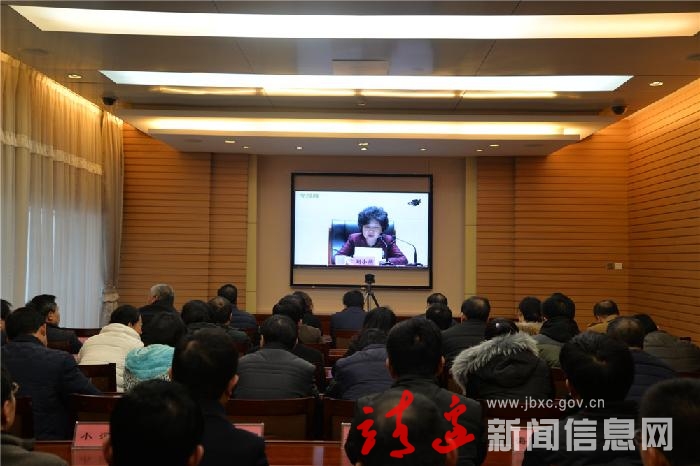 图为刘维平、贺湘如、常少海、王志强等在我县分会场参加了会议