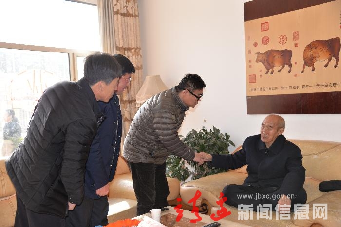 慕靳革与建国前老党员李克胜亲切交谈