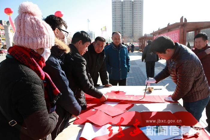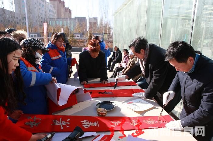 靖边县原政协主席贺启鹏与与中书协10多名会员不畏数九寒冬,挥毫泼墨服务群众,发挥自我。他们把认真书写好的一副副吉庆、祥和的大红春联送到老百姓手中。受到群众一致欢迎。