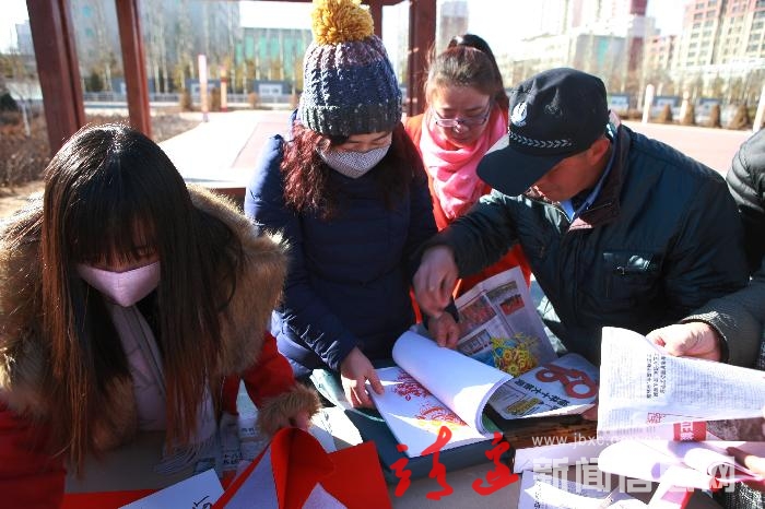 本网讯(刘名山 摄影报道)瑞雪吉兆丰稔岁,金鸡喜报太平年。鸡年将至,农历腊月二十二至二十六,县文艺创作研究室、书法家协会开展2017年红红火火过大年迎新春送春联、送剪纸送书法春节文化系列活动。本次活动为期5天,先后为城区广场、部分乡镇向群众义写赠送春联14000多副,民间窗花2300余对。
