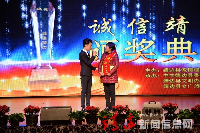 本网讯(郭旭)1月22日,我县在广电大楼演播室举行“诚信靖边”颁奖典礼,表彰了我县2016年度“诚信靖边”先进集体10个,先进个人14名,诚信楷模1名,文明家庭2户。