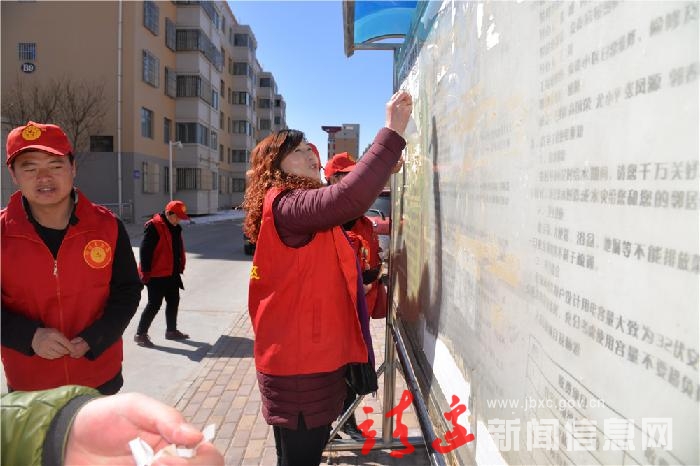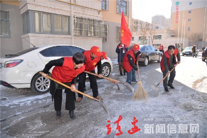 在毛主席题词号召“向雷锋同志学习”54周年,也是第17个“中国青少年志愿者服务日”之际。民生路社区组织辖区内在职党员、青年志愿者及社区志愿者对阳光家园小区院内进行清理积雪、清扫卫生死角及清除野广告等义务劳动。