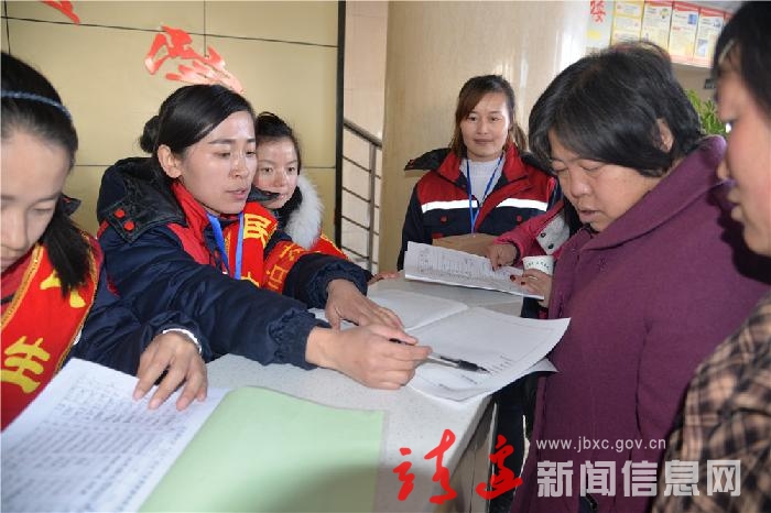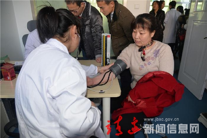在活动现场,几十名妇女正在B超室外排队等候检查,各科室内医务人员为妇女们进行称体重、测血压等常规项目检查,社区志愿者帮助维持秩序,搀扶行动不便的妇女进行体检。