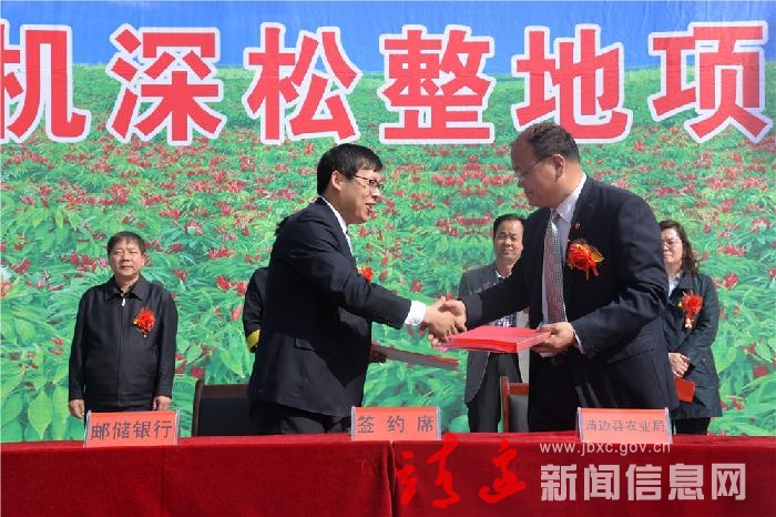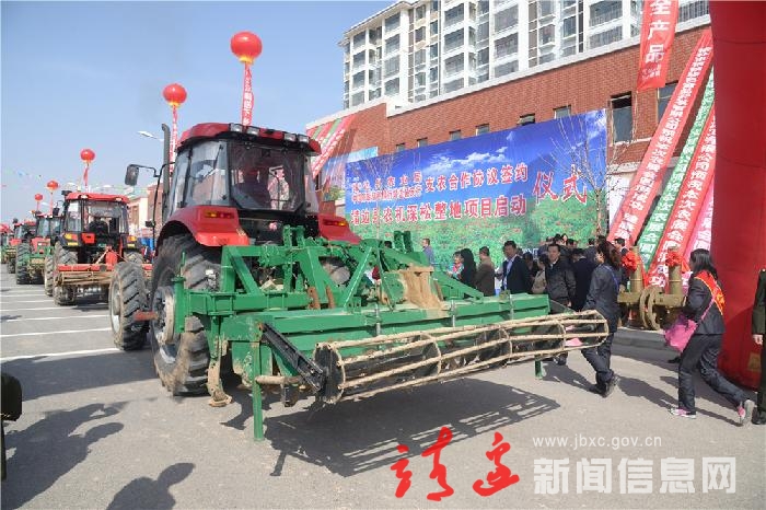 仪式上,靖边县农业局与邮政储蓄银行靖边支行签订支农协议。贺湘如宣布靖边县农机深松整地项目正式启动。部分农机进行了展示。