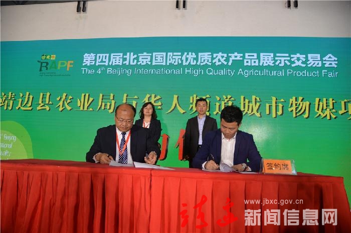 靖边县农业局与北京华人频道签约现场。曹晔摄。