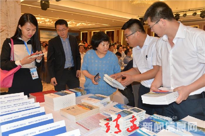 与会人员正在收集靖边招商引资的宣传册。曹晔摄。