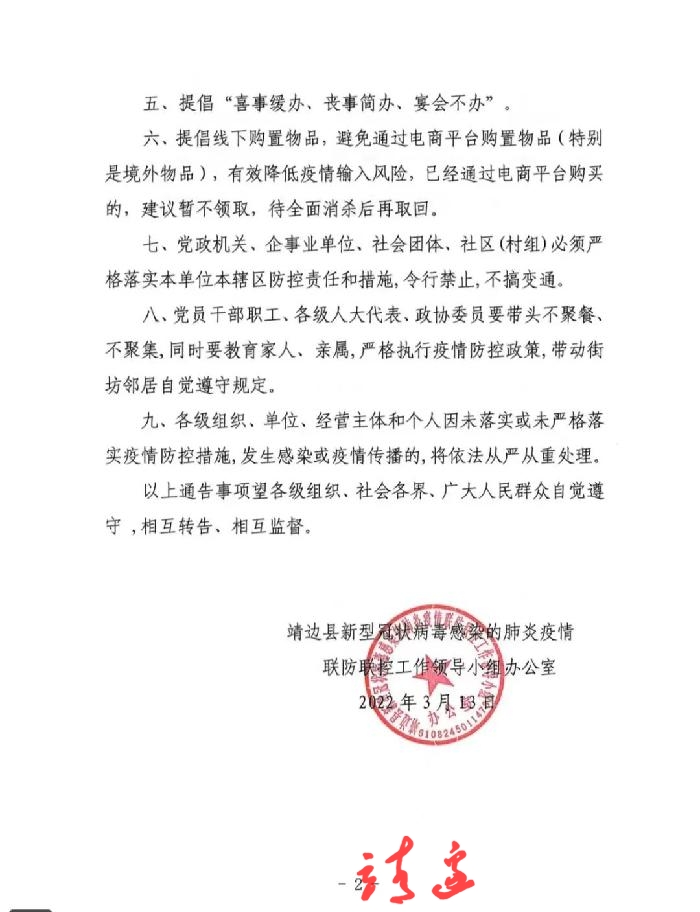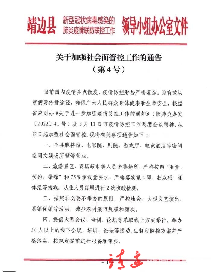 靖边县联防办:关于加强社会面管控工作的通告