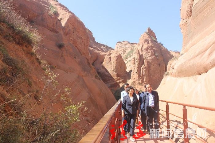 银川市副市长钱秀梅在龙洲丹霞地貌景区考察