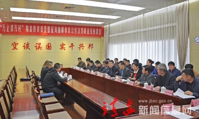 10月26日,我县召开“万企帮万村”精准扶贫督查暨征询榆林市非公经济发展意见座谈会。市工商联副主席张修前、县委常委统战部长刘钧及相关单位、企业代表参加了会议。