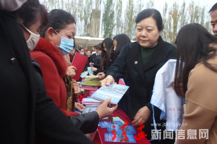 胡荣芳为广大群众发放平安建设宣传手册