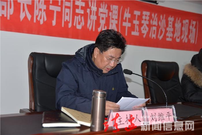随后,陈宁在牛玉琴治沙基地现场为我县党员领导干部讲授专题党课。县、镇、村三级70余名领导干部聆听专题党课。县委书记刘维平主持党课。