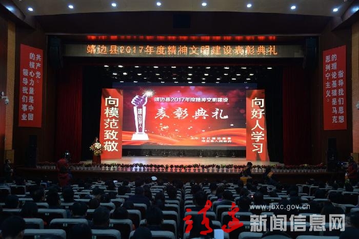 11月30日,由县委县政府主办,县宣传部、文明办、妇联、文广局承办的靖边县2017年度精神文明建设表彰典礼在县大礼堂举行。县委书记、县文明委主任刘维平,县长、县文明委第一副主任贺湘如,县委常委、宣传部长、文明委副主任邬晓君,县委常委、副县长、文明委副主任刘波,县委常委、组织部长孟春伟,副县长习江鹏出席了表彰典礼。