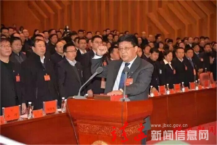 在靖边县第十八届人民代表大会第三次会议闭幕式上,王鑫以新当选的县监察委员会主任身份向宪法庄严宣誓。