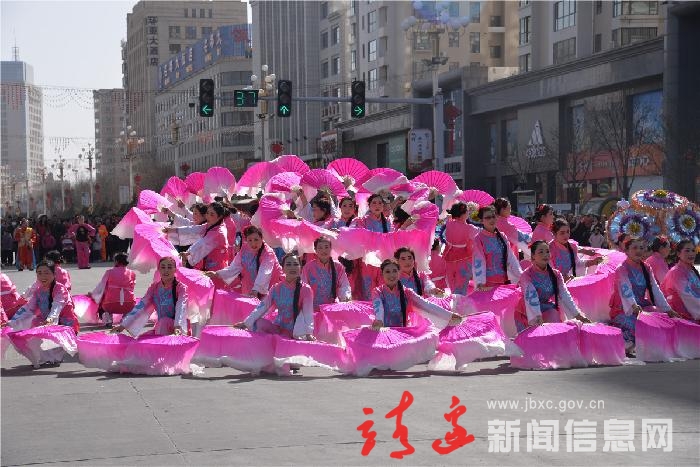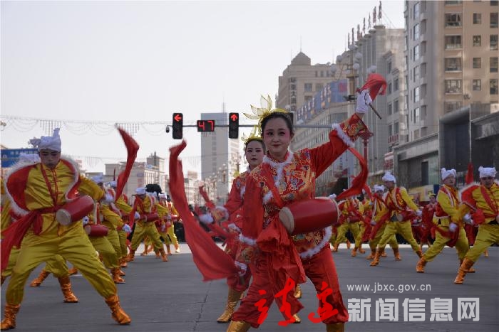 飞舞的彩扇、旋转的花伞、翻飞的红旗、热闹的腰鼓,无不洋溢着浓浓的年味、彰显着陕北靖边的独特魅力。“这秧歌扭得真好!”“唢呐队伍也吹得很牛!”“腰鼓打得真带劲……”观看演出的市民不时发出啧啧赞叹,纷纷拿出手机、相机记录下各个精彩瞬间。