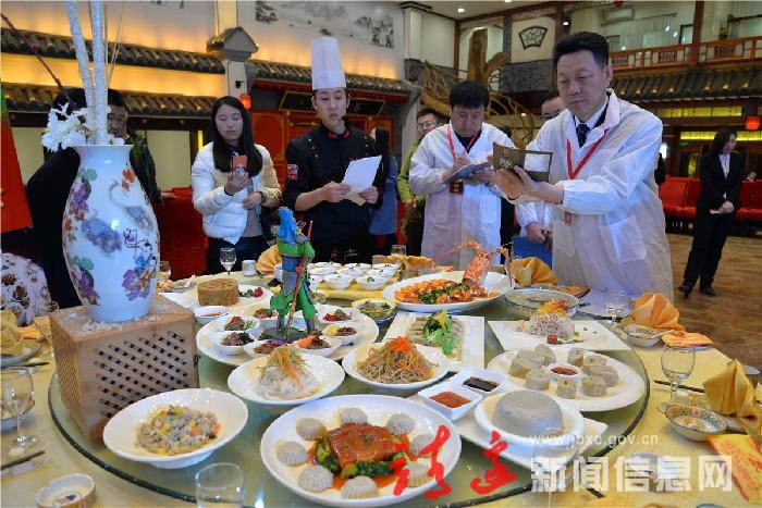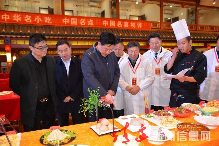 评审团专家现场对靖边县3席中国名宴,4种中国名点,36道中华名小吃进行认证评审。