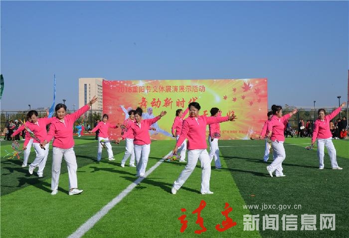 10月16日,我县在城市运动公园举行“舞动新时代夕阳无限好”重阳节文体展演活动。县委书记刘维平,县委常委、副县长刘波,县人大常委会副主任高升,县政府党组成员刘生峰,县老体协主席郭万发及宣传部、教体局、文广局、老干局等单位负责人与广大市民一同观看展演。