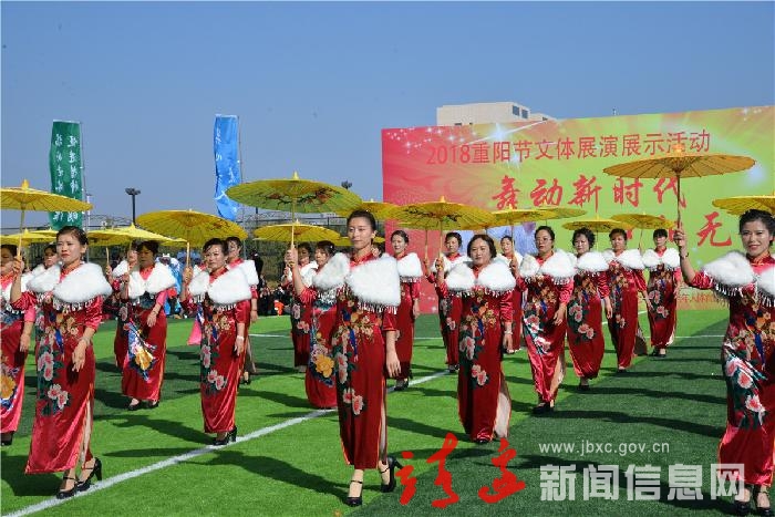 活动现场,来自全县的37支参演队伍中,1200余名离退休干部职工和文体爱好者,身着鲜艳服装,以昂扬的精神,饱满的热情,先后表演了秧歌、旗袍秀、广场舞、柔力球、体操等文体健身节目,充分展示了我县老年人老有所为、老有所乐的精神风貌和阳光向上的健康心态。