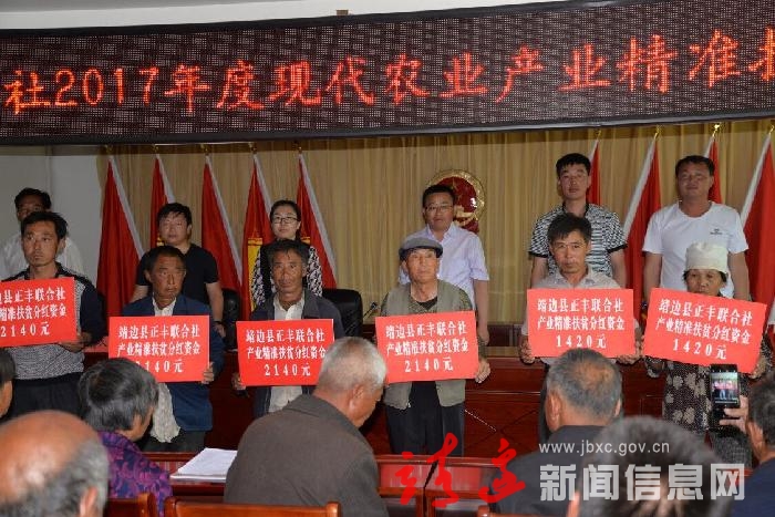 5月17日,靖边县正丰联合社现代农业产业精准扶贫现金发放仪式在黄蒿界镇举行。当日,该社的成员万科食用菌合作社现场为所帮扶的贺阳畔村和五合村的27户贫困户,发放现金49860元,其中贫困户每户2140元,脱贫巩固户每户1420元。
