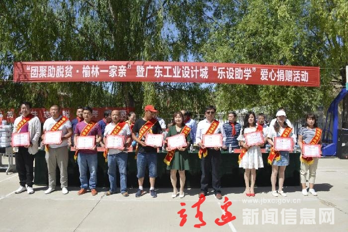 6月4日,为进一步推动“团聚脱贫 榆林一家亲—榆林市青年助力脱贫攻坚行动”深入开展“城乡手拉手”活动,关心帮助贫困家庭学生的学习和生活,全力助推我县脱贫攻坚工作。在县团委的组织下我县开展“团聚脱贫 榆林一家亲”暨广东工业设计城“乐设助学”爱心捐赠活动。共青团榆林市委书记,党组书记殷海舰、县委常委副县长刘波,榆林市扶贫办科长张剑,广东工业设计城党委委员井春英及各相关部门企业相关负责人参加活动。