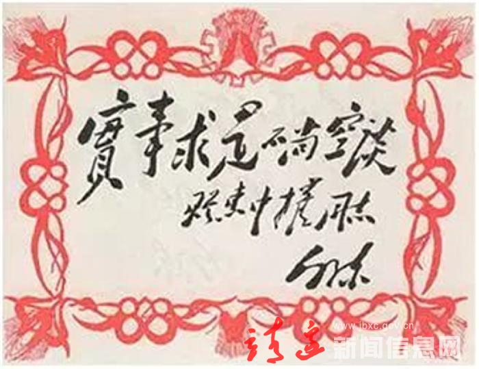若将时针拨回1935年,塞北靖边还是一个漫天黄沙、植被稀疏的不毛之地。1942年,时任靖边县委书记的惠中权本着抵御风沙造福百姓的初衷,大力推行种树植草,受到了党中央和毛主席的高度赞扬,主席于是亲笔题词“实事求是、不尚空谈”赠予表彰。从那以后,历届县委和政府都把种草植树当成大事,在历任领导干部的以身作则和群众的积极参与下,全民植树变成了一种社会风气。经过几十年与风沙博弈的历史,一代又一代靖边人用实际行动践行了实事求是不尚空谈的精神,谱写出了动人的绿色之歌。