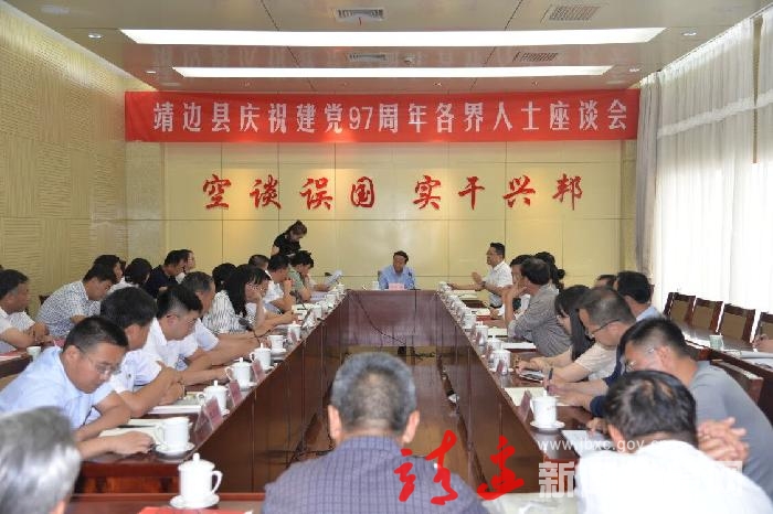 6月29日,我县举行庆祝建党97周年各界人士座谈会,邀请部分人大代表,政协委员,乡镇、部门负责人代表,村党支部书记,大学生村官等30余名各界人士共聚一堂庆祝建党97周年,为建设和谐幸福的新靖边建言献策,贡献自己的力量。