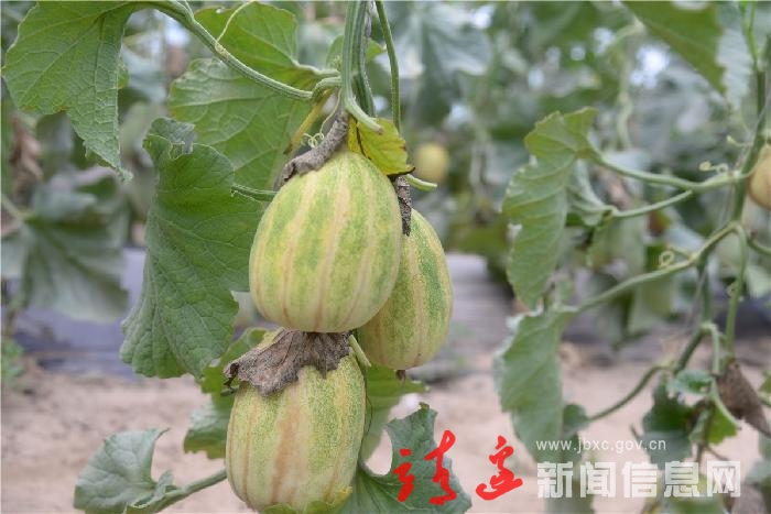 “我种了锦玉甜瓜、芝麻香瓜两个品种,近日都相继上市了。锦玉甜瓜和我们平时吃的香瓜不同,它呈长锥形状,瓜成熟后,皮薄、瓤红,又香又脆、瓜甜且多汁,口感特别好。”果园主人张旭说。