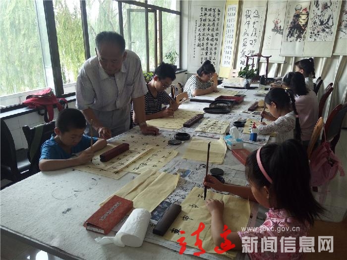 李万强在为孩子们辅导书法