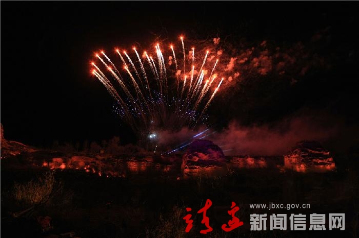 晚会上,县文工团进行了《统万风》大型历史剧文艺演出,并欣赏特色烟火表演、民间传统篝火晚会。活动期间,这座千年古城披上绚丽多彩空前的盛装,1600年后前所未有的梦幻夜景流光异彩,美不胜收。人们兴高采烈,欢歌笑语,文工团演员与观众互动起舞,共度这个美妙的夜晚,将晚会推向高潮。